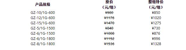 優(yōu)惠一:凡是購買隴星鋼制系列1G型產(chǎn)品,可享受以下整組特價優(yōu)惠:
