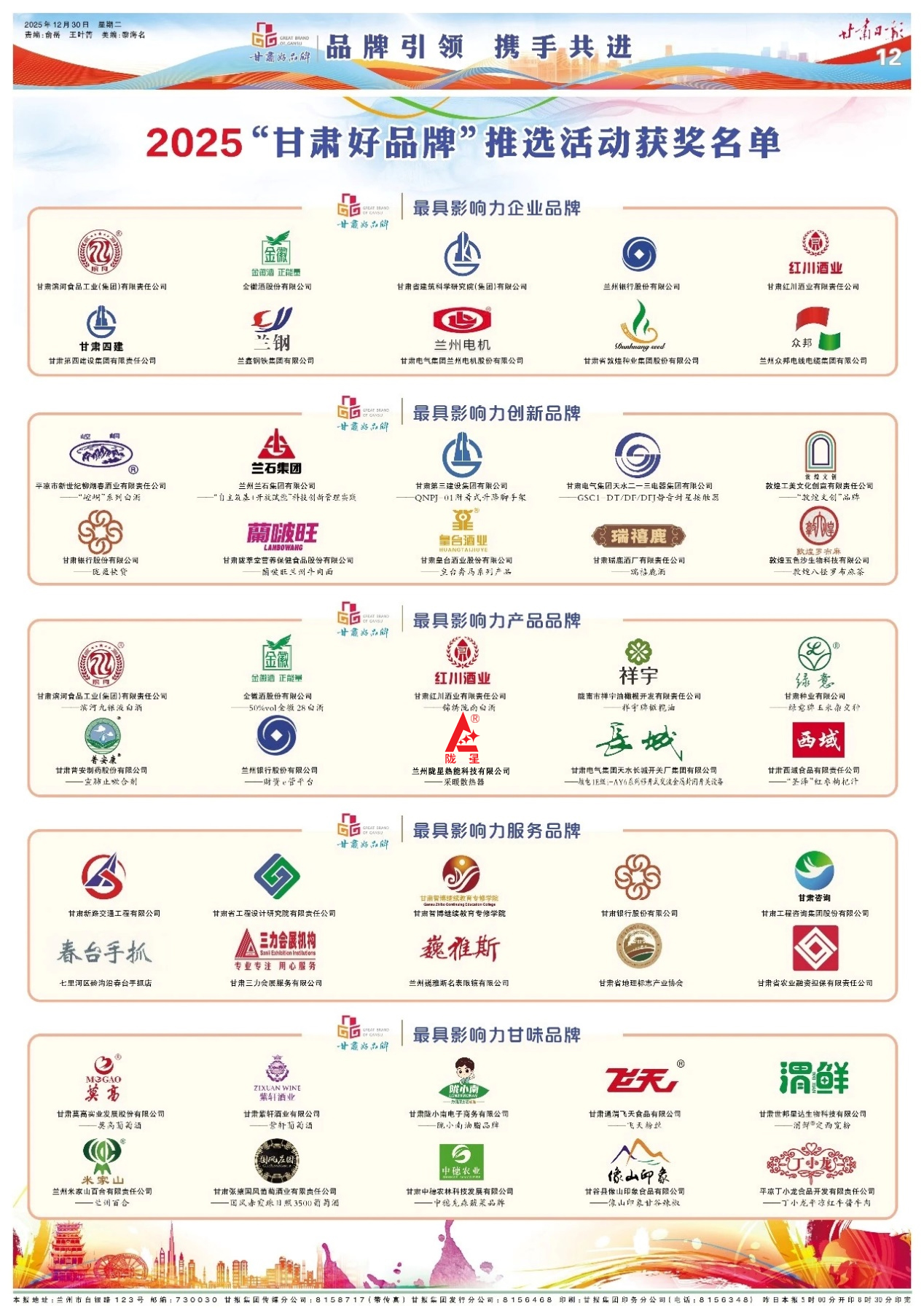 2025年12月30日,《甘肅日?qǐng)?bào)》第11版、第12版以“品牌引領(lǐng)、攜手共進(jìn)”為主題,刊發(fā)了2025“甘肅好品牌”推選活動(dòng)獲獎(jiǎng)名單。隴星品牌憑借其卓越的產(chǎn)品質(zhì)量、深厚的品牌積淀與廣泛的市場(chǎng)影響力,榮獲 “最具影響力產(chǎn)品品牌” 稱(chēng)號(hào)。