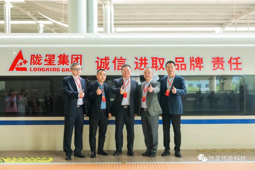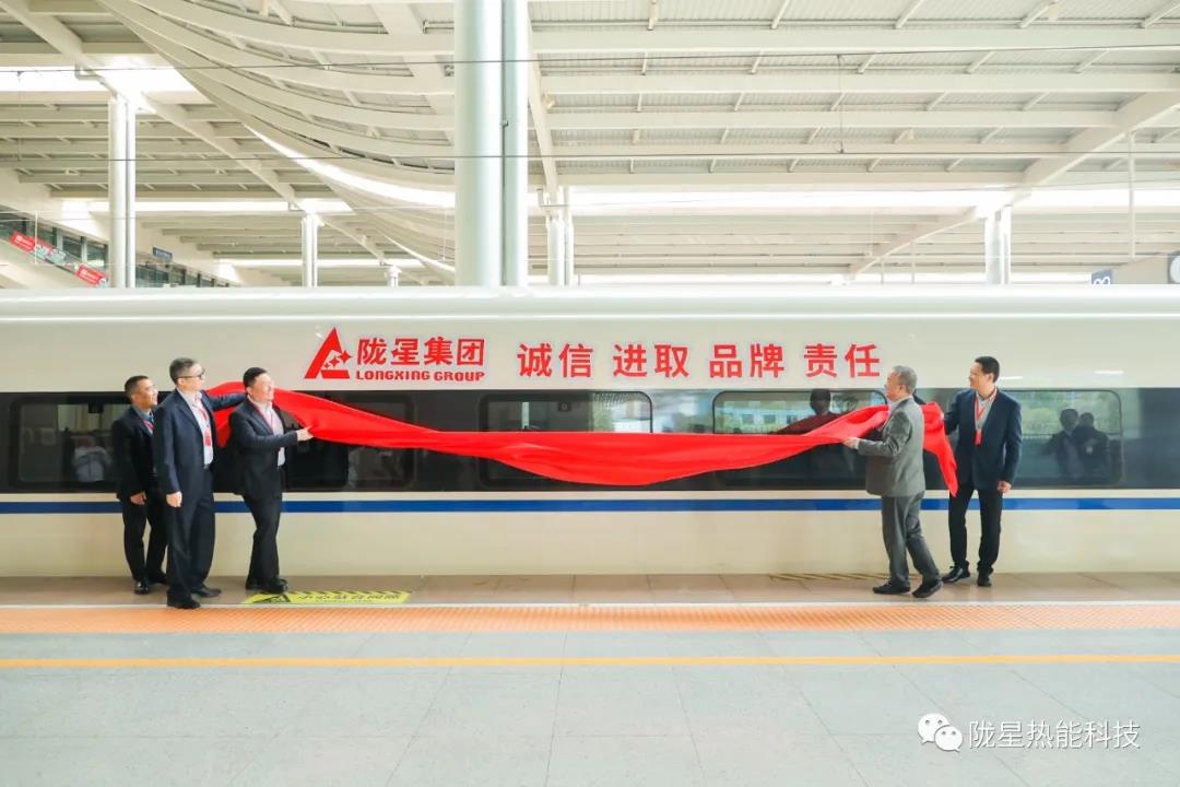 在首發(fā)儀式工作人員的引導(dǎo)下,出席隴星集團(tuán)高鐵冠名首發(fā)儀式的領(lǐng)導(dǎo)及嘉賓來(lái)到了隴星集團(tuán)高鐵冠名列車所在的站臺(tái)。主持人邀請(qǐng)隴星集團(tuán)副總、隴星熱能科技公司總經(jīng)理趙明珠先生與華鐵傳媒集團(tuán)副總裁杜勁松先生,以及隴星熱能科技公司三位員工代表共同為隴星集團(tuán)的高鐵冠名列車揭幕,現(xiàn)場(chǎng)響起了熱烈的掌聲,站臺(tái)上來(lái)來(lái)往往的乘客也駐足觀看,高鐵列車上紅色的隴星集團(tuán)LOGO及隴星企業(yè)精神八個(gè)大字格外引人注目。